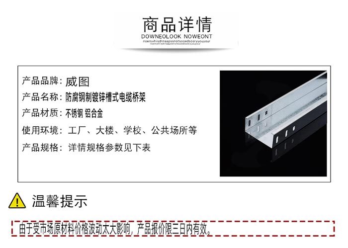 产品名称型号: 防腐钢制镀锌槽式电缆桥架